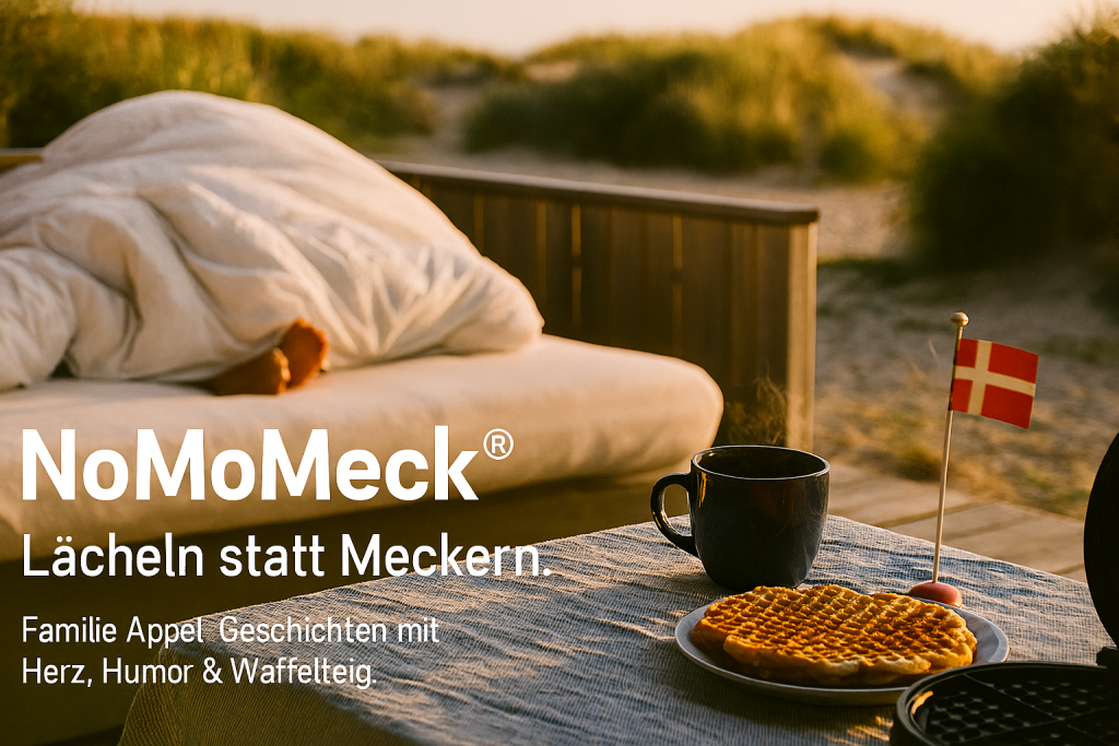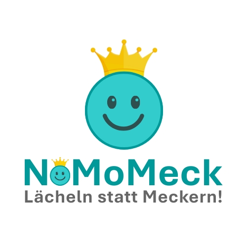 „Willkommen bei NoMoMeck® – der Bewegung für ein Leben mit weniger Meckern und mehr Lächeln! Schön, dass Du da bist.“